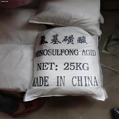 氨基磺酸,是一种硫酸的羟基被氨基取代而形成的无机固体酸,化学式为NH2SO3H,分子量为97.09,一般为白色、无臭的斜方形片状晶体,相对密度2.126,熔点205℃,溶于水、 液氨,在常温下,只要保持干燥不与水接触,固体的氨基磺酸不吸湿,比较稳定。 氨基磺酸的水溶液具有与盐酸、硫酸等同等的强酸性,故别名又叫固体硫酸,它具有不挥发、无臭味和对人体毒性小的特点。 粉尘或溶液对眼及皮肤有刺激性,能造成灼伤,最高容许浓度10mg/m3。氨基磺酸可用于合成除草剂、防火剂、甜味剂、防腐剂、金属清洗剂等,是一种常见的化工原料。